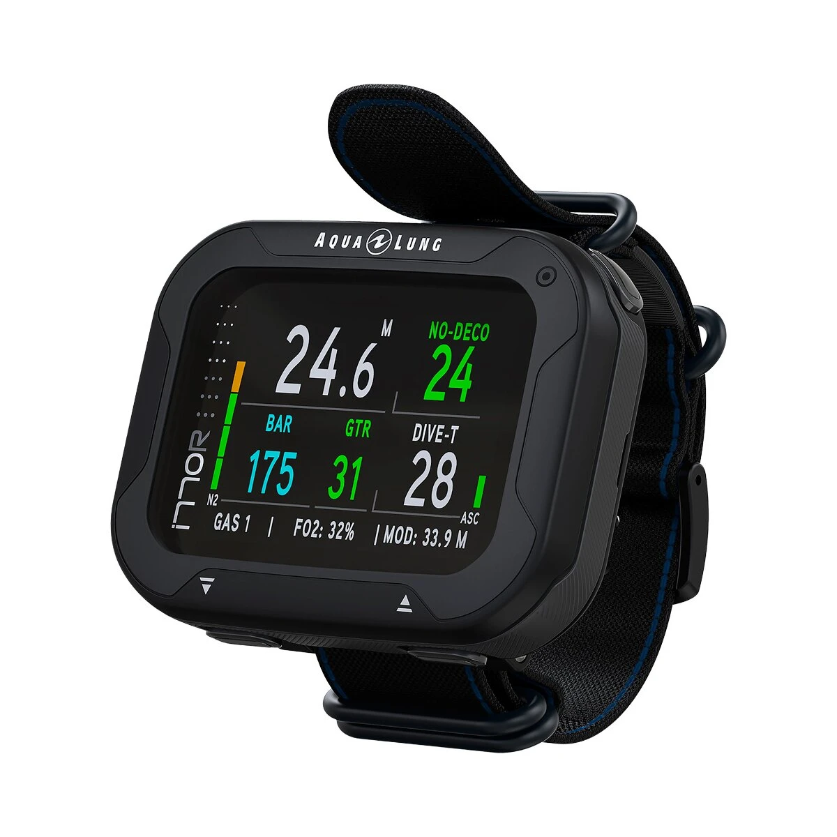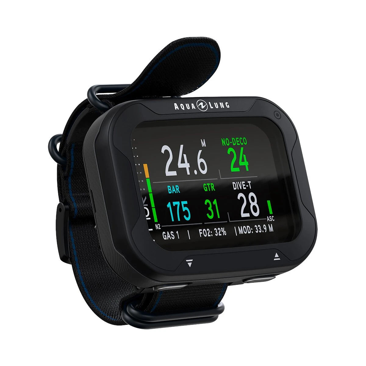 Der Aqualung i770R Tauchcomputer ist ein robuster und zuverlässiger Tauchcomputer mit einer robusten Fassung aus bruchsicherem Elastomere und einem reißfesten Textilarmband.