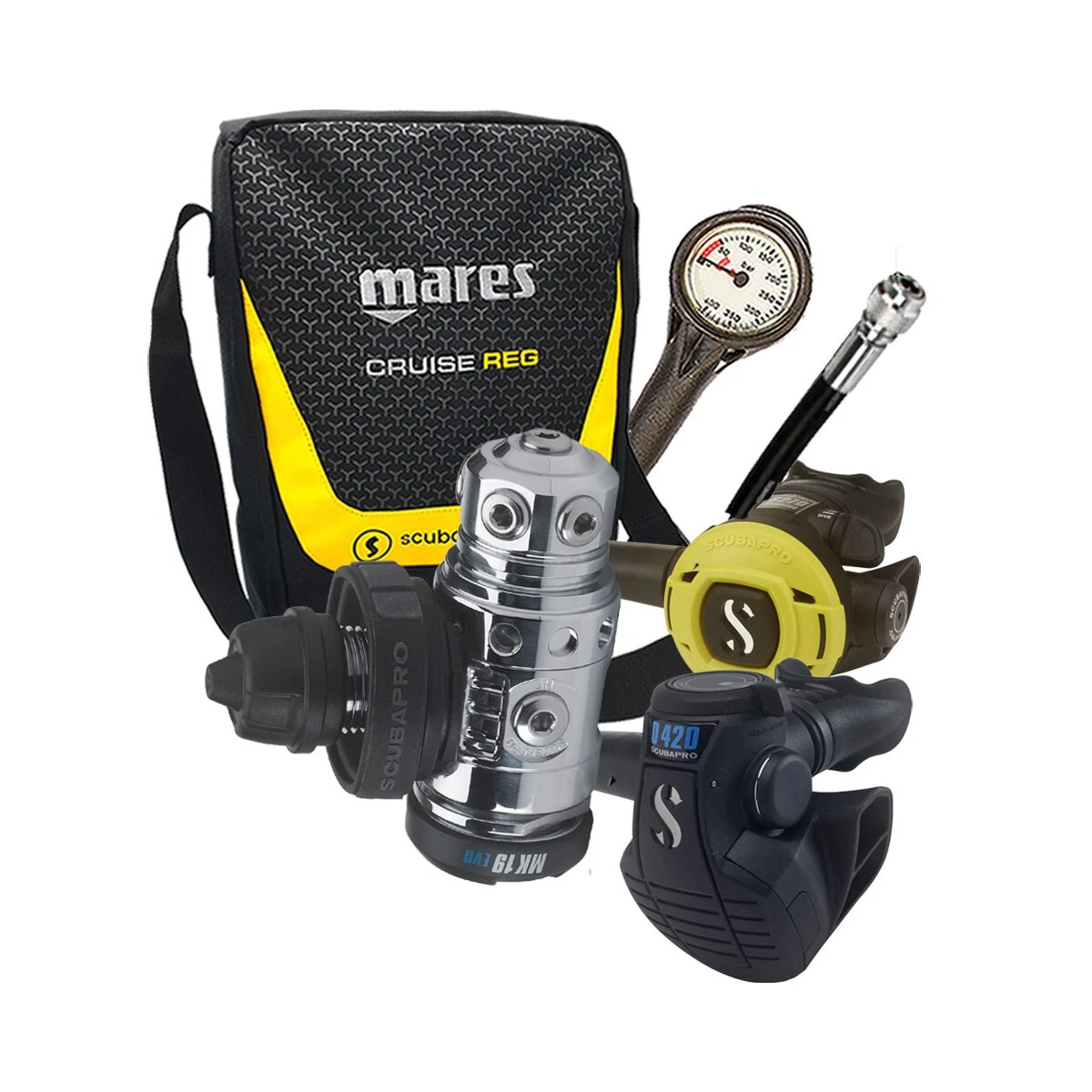 Atemregler Komplettset Scubapro MK19 EVO / D420 / S270 inkl. Finimeter, Inflatorschlauch und Atemreglertasche