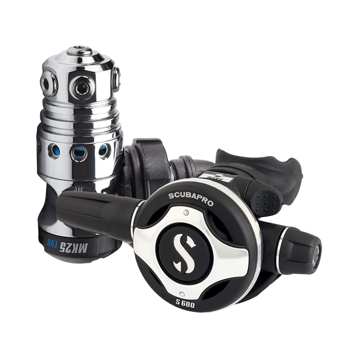 Dieser hochwertige Scubapro Atemreglerbesteht ist auch verfügbar als Atemreglerset MK25 S600 R105 mit passender alternativen Luftversorgung und auch als Scubapro Atemregler Komplettset mit Finimeter, Inflatorschlauch und Atemreglertasche verfügbar.