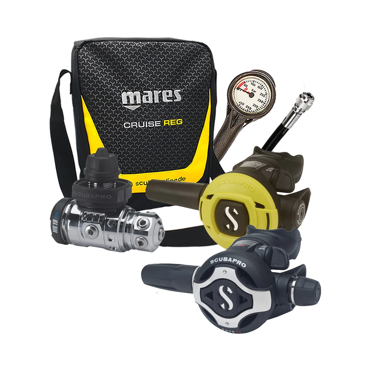 Atemregler Komplettset Scubapro MK19 EVO / S620 Ti / S270 inkl. Finimeter, Inflatorschlauch und Atemreglertasche