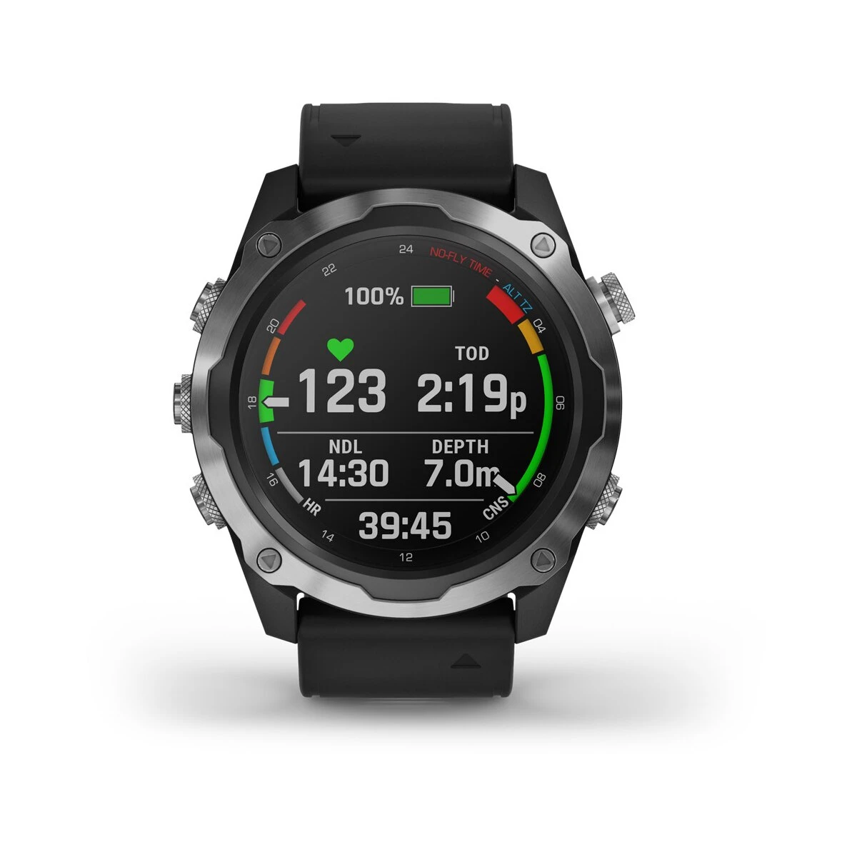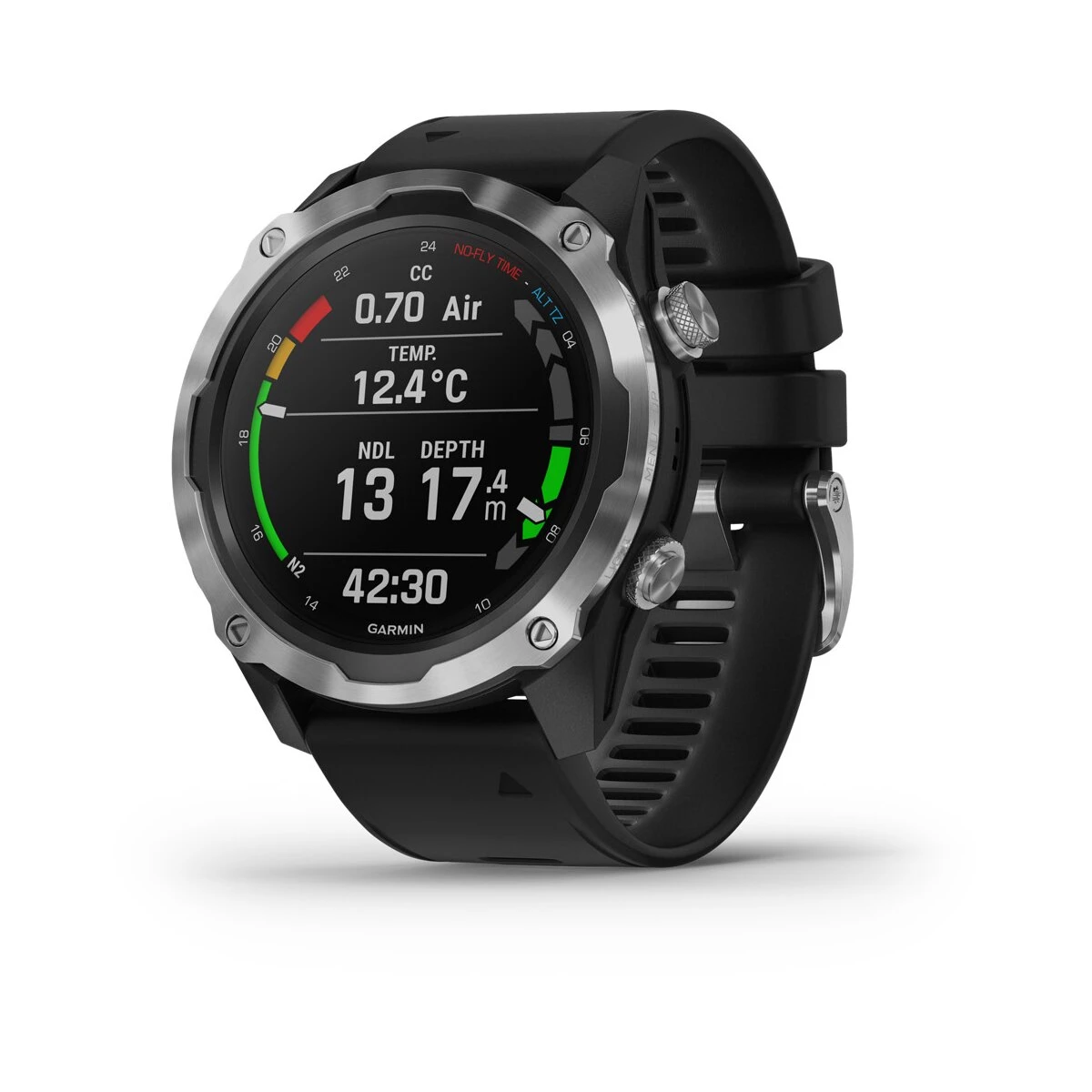 Weitere Features: Tauchplaner, Gezeiten, Tauchgang automatisch starten/beenden, Benutzerdefiniertes Zeitlimit zum Beenden des Tauchgangs (20 s zu 10 m), Deep Stops, anpassbarer Konservativismus, autom. Höhenanpassung, Flugverbotszeit mit 24 St. Countdown, Anzeige Auftauch/-Abtauchrate.