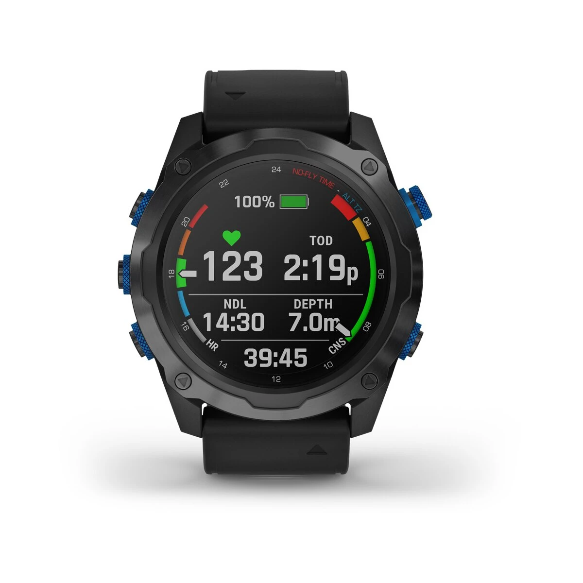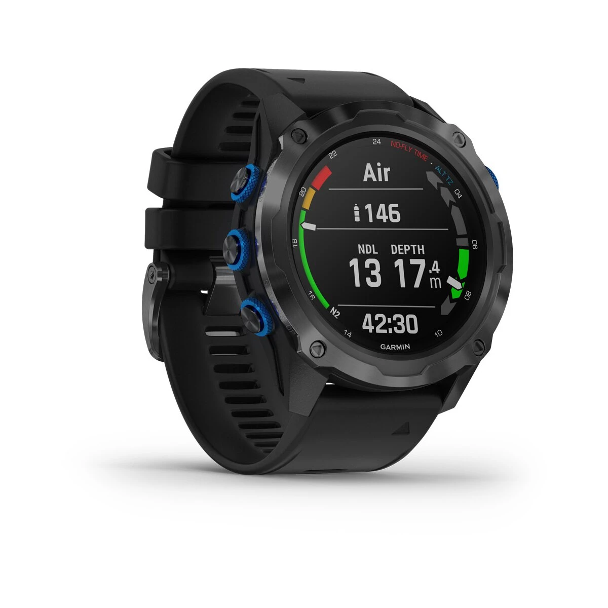 Der Garmin Descent MK2i Titan Tauchcomputer mit Garmin T1 Sender ist das Nachfolgermodell der Garmin MK1, und übertrifft diesen mit umfangreicheren Features, größerer Anzeige, doppelten Speicherplatz, optionaler Luftintegration und noch mehr Sicherheit für Ihre Gesundheit beim Tauchen und beim Sport.