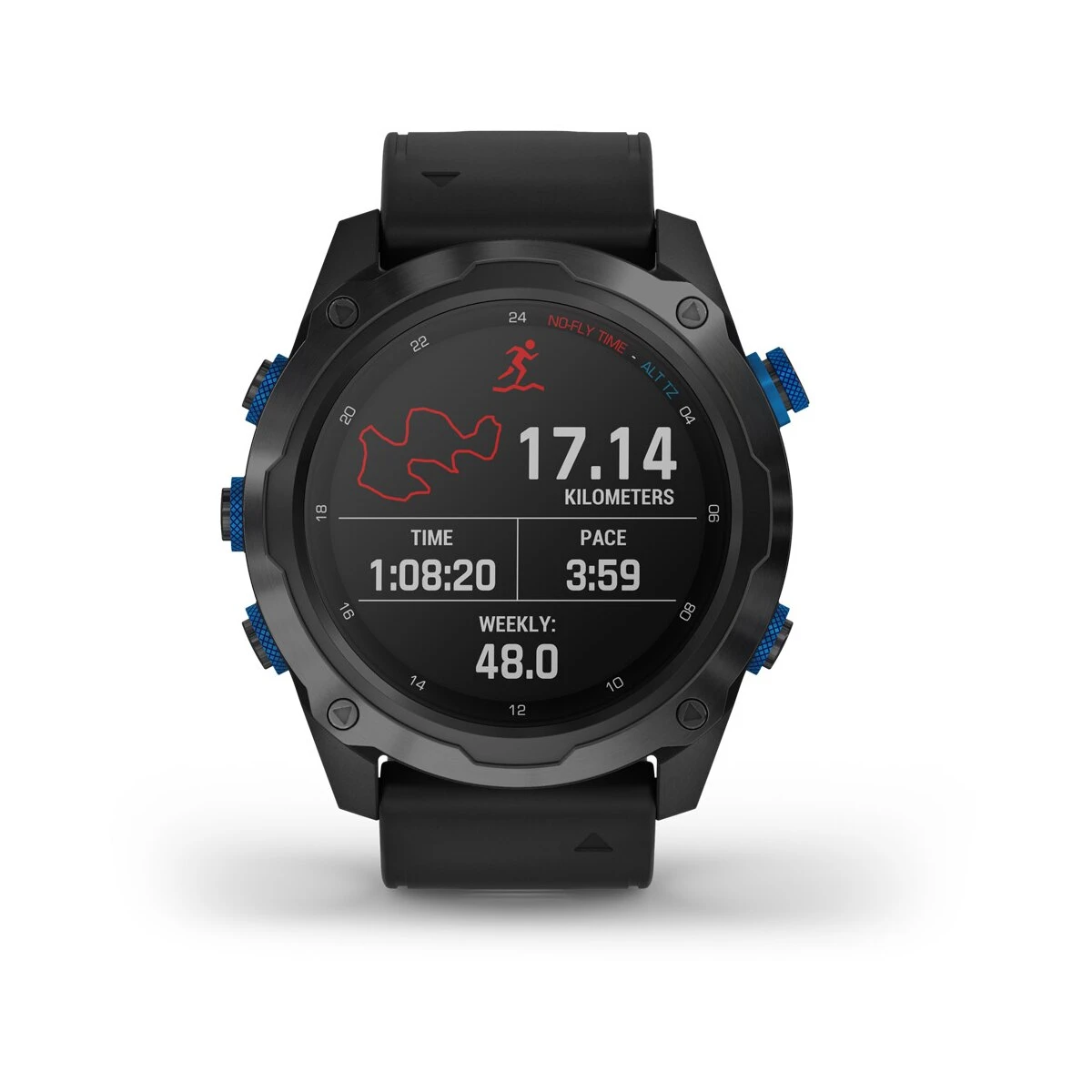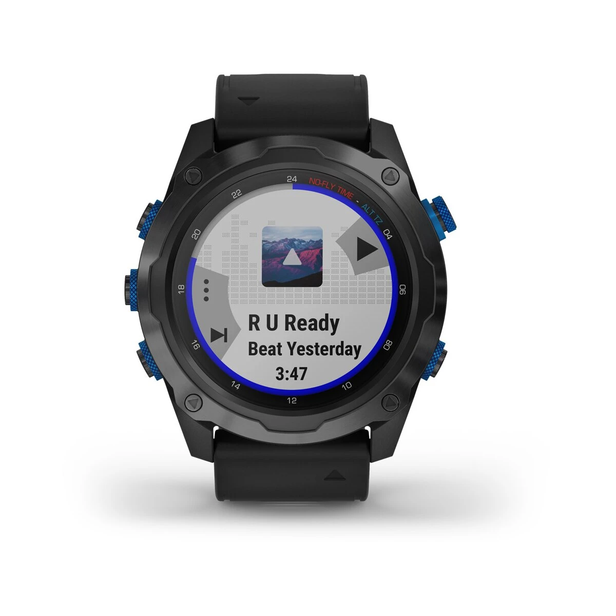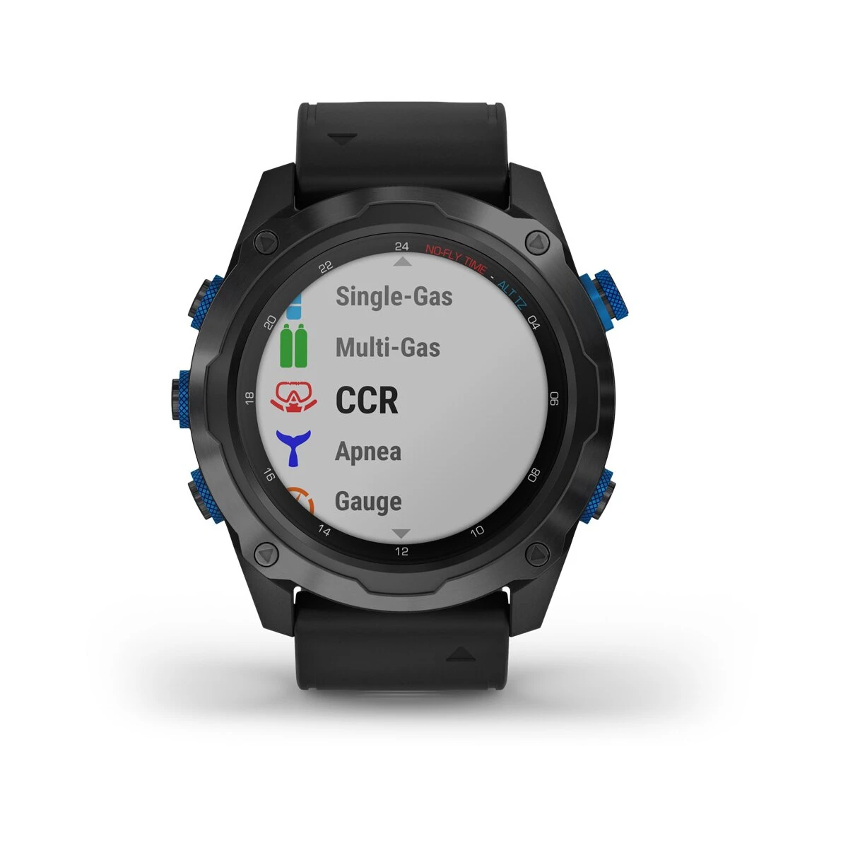 Luftintegration: ja, optional mit dem Garmin T1 Transmitter und Garmin Connect, Anzeige verbleibende Gaszeit, Gasverbrauchsrate