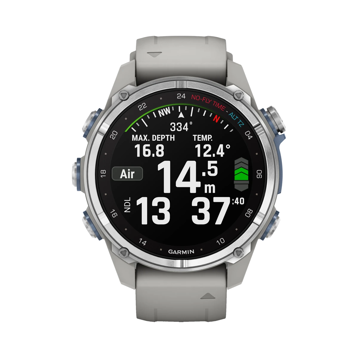 Auch weitere nützliche Messinstrumente sind in das neue Technikwunder von Garmin integriert um Ihnen alle nötigen Informationen für ein perfekt entspanntes Unterwasserabenteuer zu bieten – Tiefenmesser, Wassertemperatur, Gyroskop, Beschleunigungsmesser und barometrischer Höhenmesser.