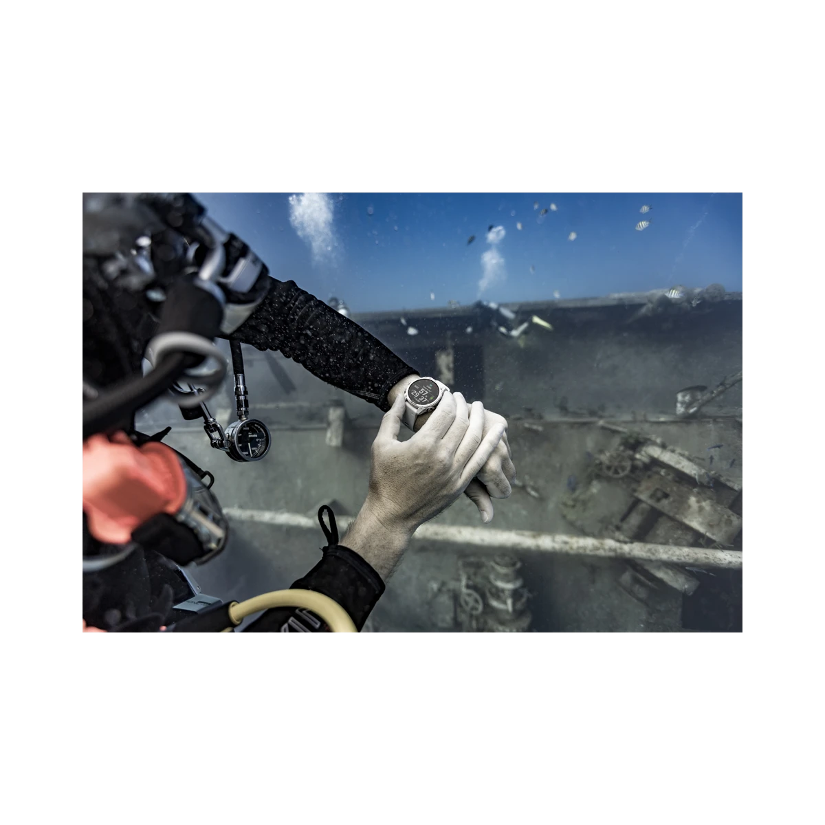 Verpackt in extrem robusten Materialien wie DLC Titan, stoßfest, rostfrei und wasserdicht bis 200m, mit einem Displayschutz aus Saphirglas und mit austauschbaren QuickFit Armbändern aus verschiedenen Materialien eignet sich der Garmin MK3 43mm auch für extreme Tauchabenteuer die Ihrem Tauchcomputer einiges abverlangen.