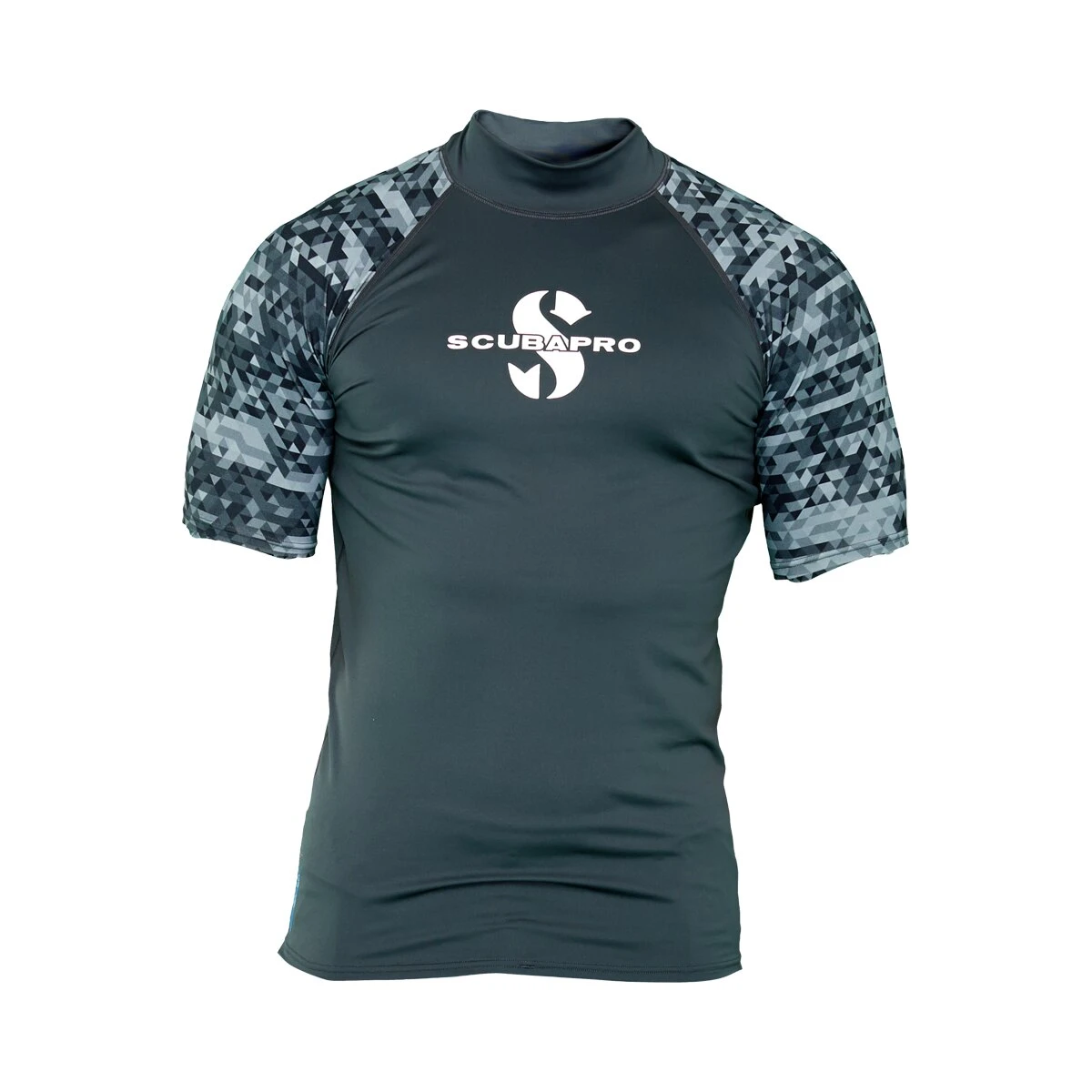 Das Scubapro Rash Guard Graphite UV-Shirt ist ein Kurzarm Sonnenschutz Shirt für Herren, und kann immer dann perfekt getragen werden wenn das Wasser beim Wassersport zu warm ist für Neopren Kleidung, Sie aber trotzdem UV Schutz und gleichzeitig Schutz gegen Nesselungen und andere Verletzungen die beim Surfen, Stand Up Paddeln, Schnorcheln oder Schwimmen auftreten könnten benötigen.