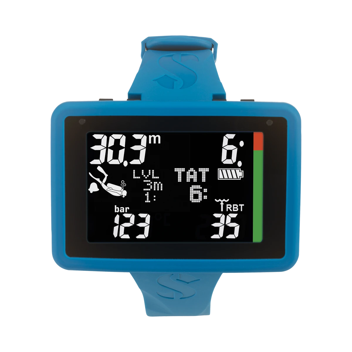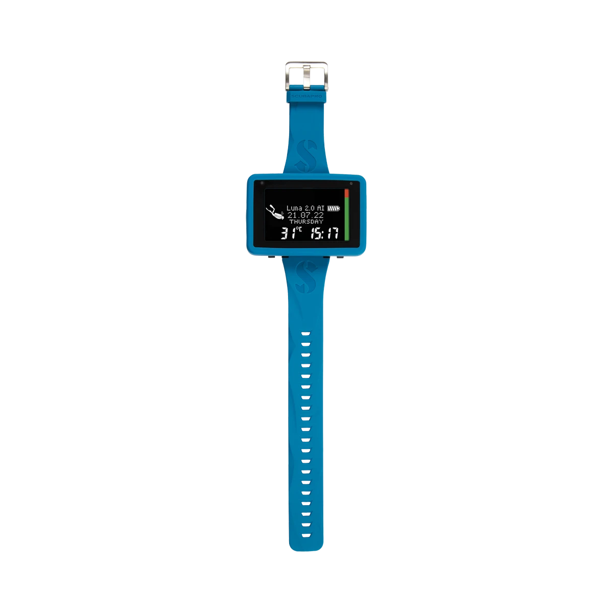 Bis zu einer maximalen Einsatztiefe von 120m begleitet Sie der Luna 2.0 AI, robust verpackt in seinem strapazierfähigen Silikongehäuse mit Ölfüllung und mit vorinstalliertem Bildschirmschutz. Da flache und kompakte Gehäuse wird befestigt mit einem weichen und reißfestem, breiten Silikon Armband mit Edelstahl Verschluss. An den Ecken des Gehäuses befinden sich Bungeehalterungen, falls Sie eine alternative Befestigungsmethode suchen, zum Beispiel um den Tauchcomputer über einen dicken Trockentauchanzug zu tragen.