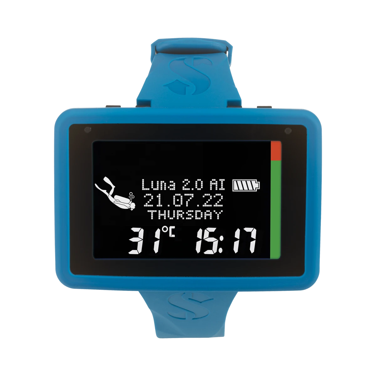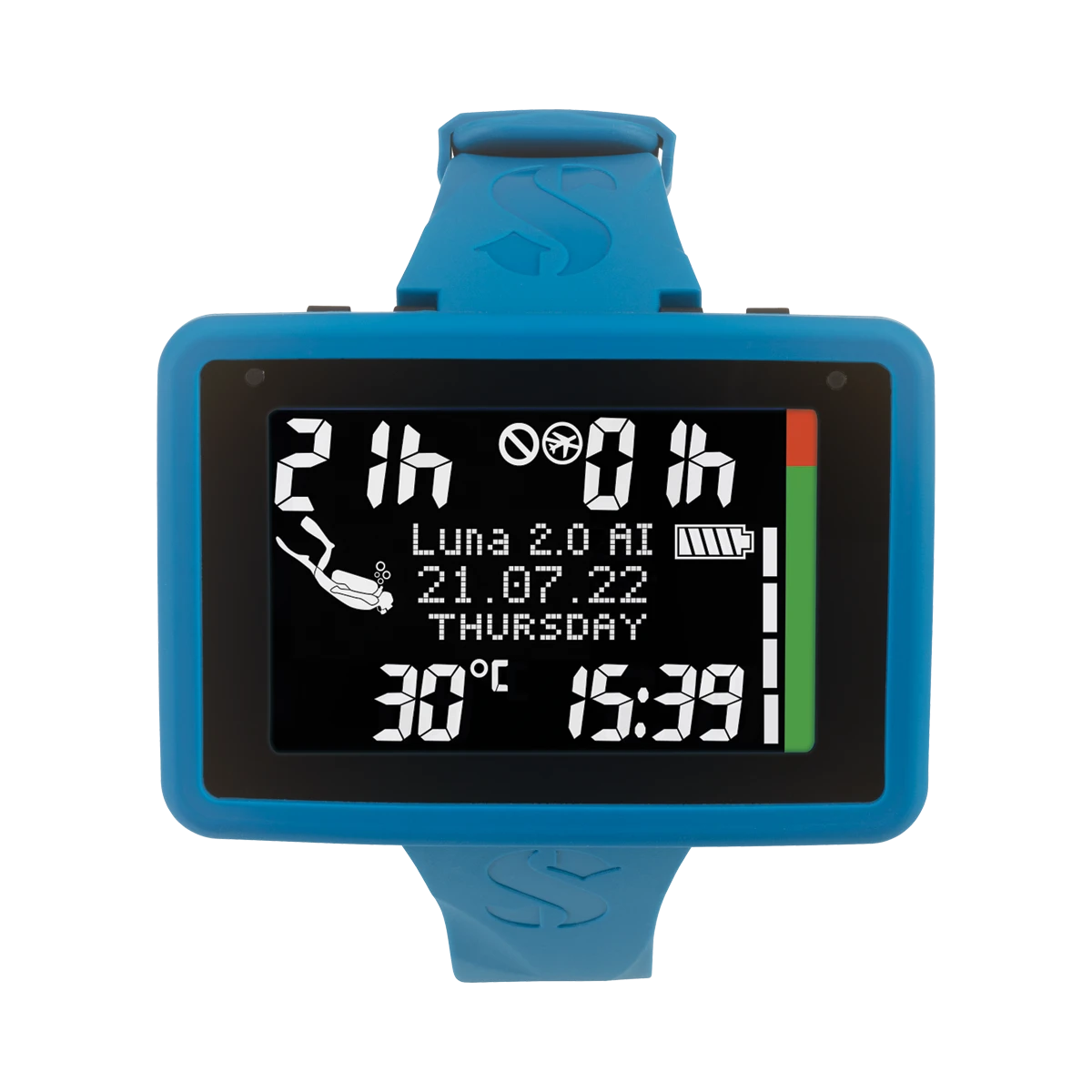 Von all den erwähnten Tauchfeatures abgesehen, bietet der Luna 2.0 AI natürlich auch alle klassischen Funktionen die Sie von einem hochwertigen Tauchcomputer erwarten, wie Uhr, Datum, Temperatur, Auswahl Süß- Salzwasser, Sicherheitsstopp und einstellbare Warnsignale für Tauchzeit, Tauchtiefe, maximale Einsatztiefe, Sauerstoffpartialdruck oder Aufstiegsgeschwindigkeit. Nach dem tauchen zeigt Ihnen der Luna 2.0 AI natürlich auch eine Flugverbotszeit an.