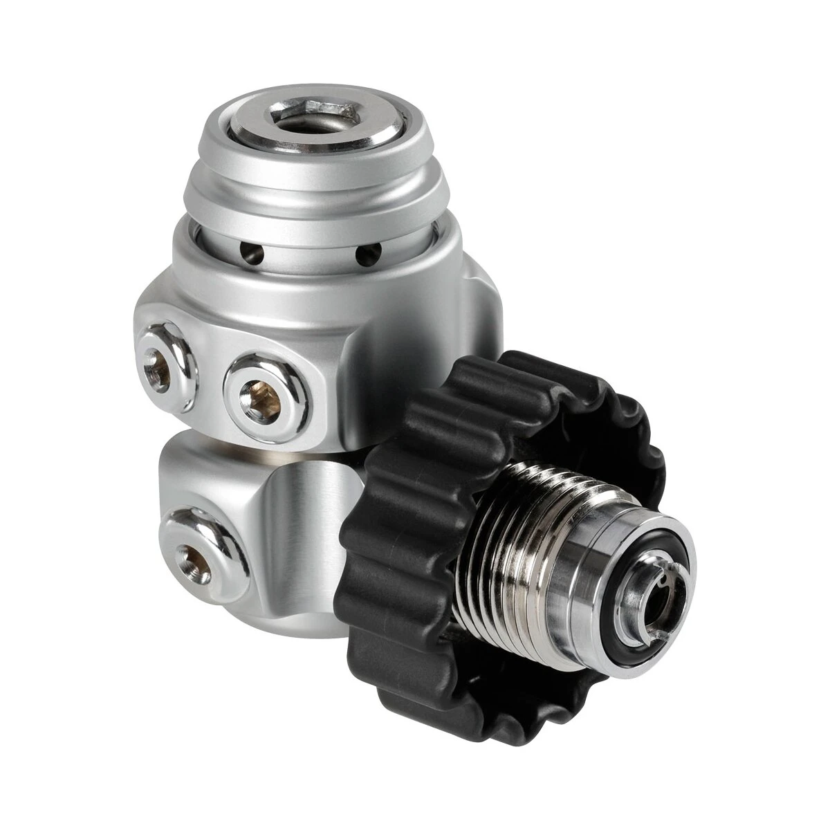 Die 62X bietet ausgezeichneten Atemkomfort nicht nur für die primäre 2.Stufe, sondern auch für den Octopus. Das kommt davon, dass diese 1.Stufe an allen MD-Anschlüssen mit DFC Bohrungen versehen wurde, um auch der alternativen Luftversorgung konstanten und natürlichen Einatemwiderstand in jeder Tiefe zu bieten, dadurch dass das DFC System (Dynamic Flow Control) den Mitteldruckabfall, der vom Einatmen verursacht wird, minimiert.