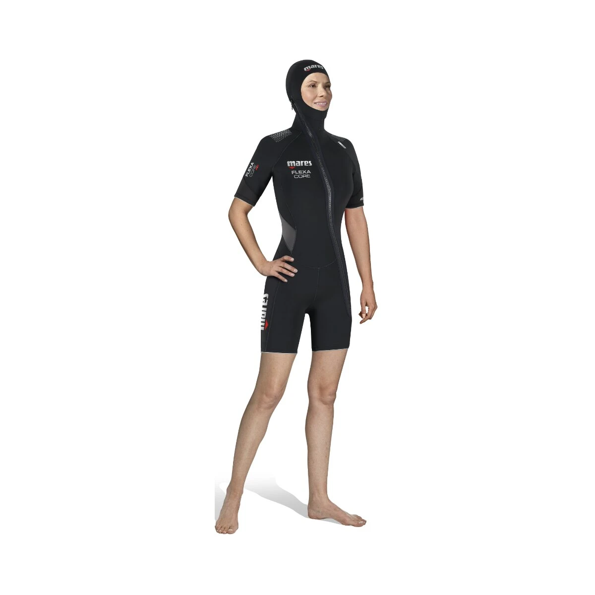 Durch die hohe Elastizität des Trilastic Neopren Materials und dank der durchdachten Schnittform mit gut abschließenden Bündchen an Ärmeln und Beinen, sitzt die Mares Flexa Core Neoprenweste wie keine andere Eisweste körpernah und bequem und garantiert somit nicht nur sehr hohen Tragekomfort, sondern auch maximalen Kälteschutz. Mit dem hohen Kragen und der angesetzten Kopfhaube schützt die Mares Flexa Core Neopren Weste zum Tauchen ganz gezielt die empfindlichen Bereiche am Hals und Kopf vor unnötigem Wärmeverlust beim Tauchen oder Schnorcheln. Denn auch beim Schnorcheln findet die Mares Neoprenweste Flexa Core SheDives auch eine praktische Anwendung als Neopren Shorty zum Schnorcheln.