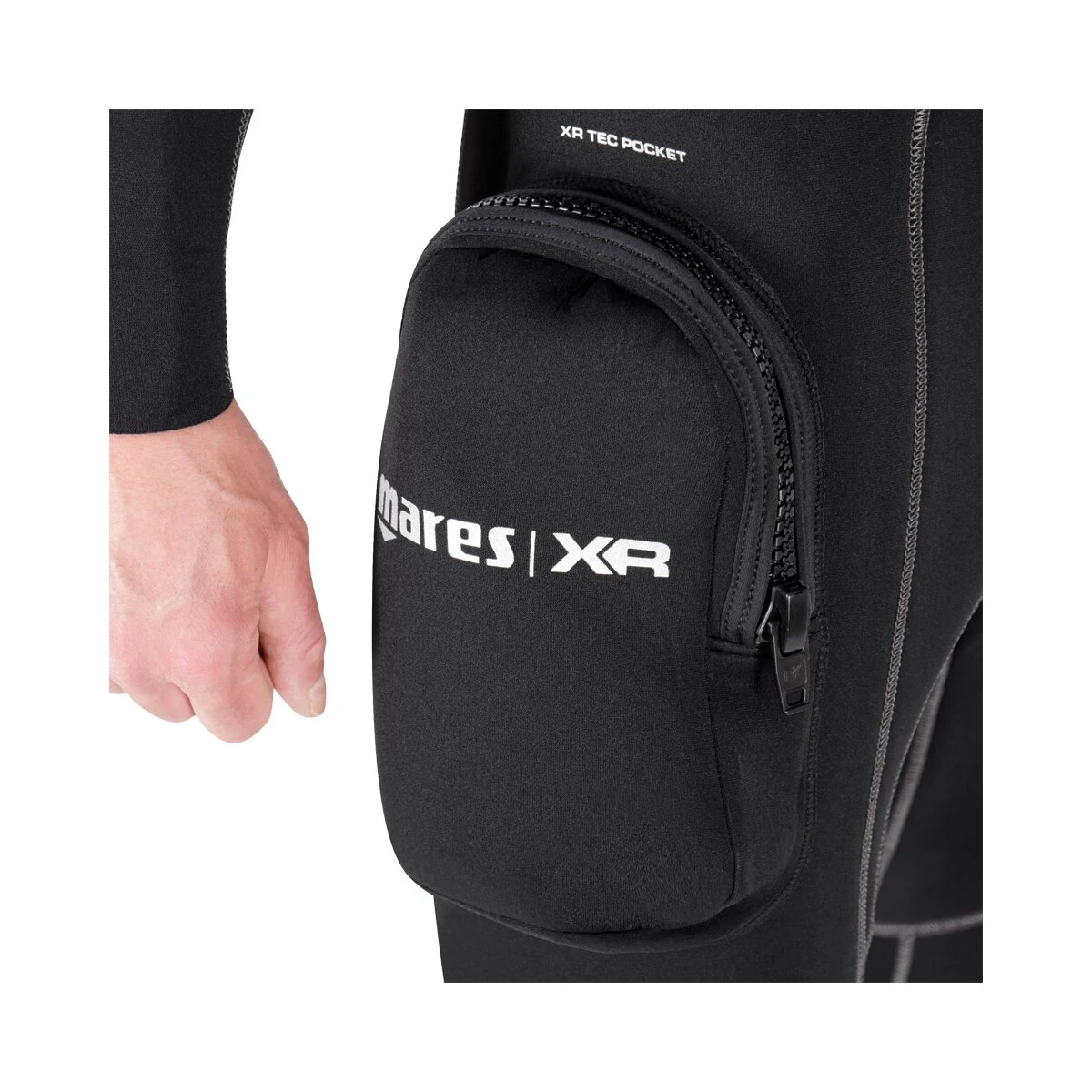 Auch Stauraum fehlt an dem Mares Neoprentrockentauchanzug XR3 nicht, denn auf dem rechten Bein finden Sie ein große Neoprentasche mit Reißverschluss.