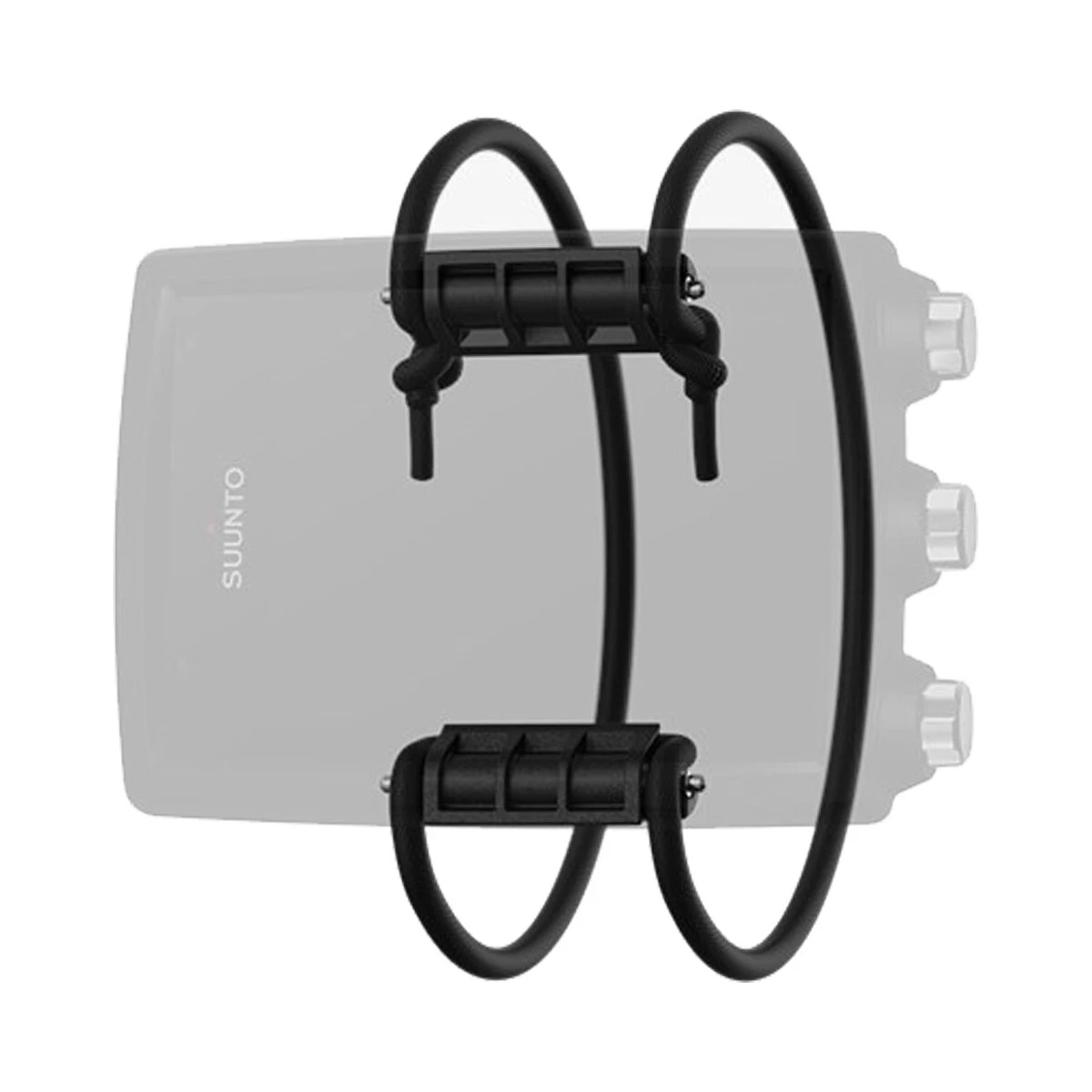 Komplettset zum Befestigen einer Bungee-Halterung am Suunto EON Core Tauchcomputer. Enthält ein ca. 1 m / 39 Inch langes Gummiband, Adapter, Federstifte und Montageanleitung. Nach der Montage kann die Länge des Bandes leicht angepasst werden. Sie benötigen noch einen Schlitzschraubendreher.