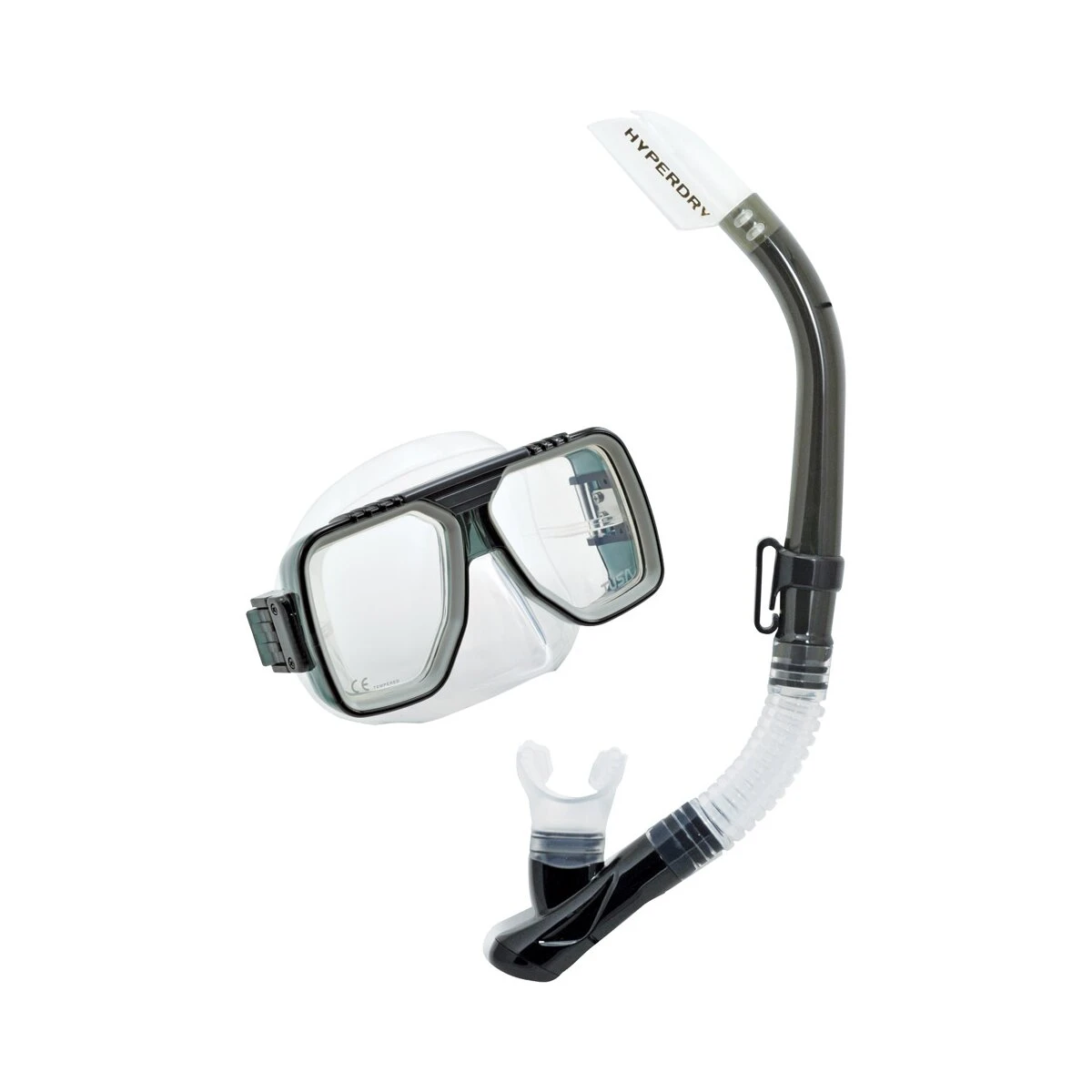 Set bestehend aus: TUSA Maske Liberator und TUSA Hyperdry Schnorchel in einer praktischen TUSA Schnorcheltasche